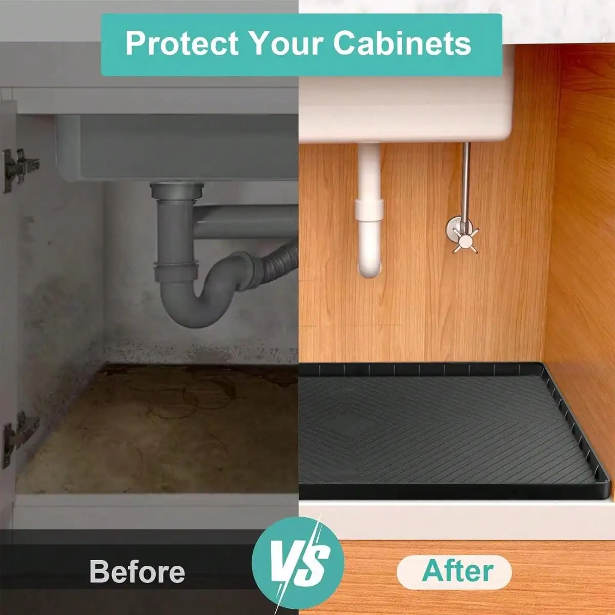 【Multiple Purpose】Versatile beyond kitchen under sink mat, these mats are perfect for bathroom cabinets, under washroom counters, garden mats, pet feeding areas, tool organization, crafting, coffee machine placement, shoe cleaning, and more. Essential for preventing messes and spills, keeping floors clean and dry.